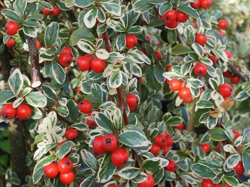 Zwergmispel 'Juliette' - ein attraktiver Strauch, der eine Höhe von etwa 60-80 cm erreicht. Von Mai bis Juni erscheinen die Blütenstände aus weißen bis rosafarbenen Blüten. Diese werden anschließend von orange-roten Früchten abgelöst. Am auffälligsten sind seine panaschierten Blätter, die sich als Bonus im Herbst rosa färben. Zusammen mit anderen Sträuchern und Gräsern bildet er eine schöne Komposition, aber auch als Solitär kommt er gut zur Geltung.