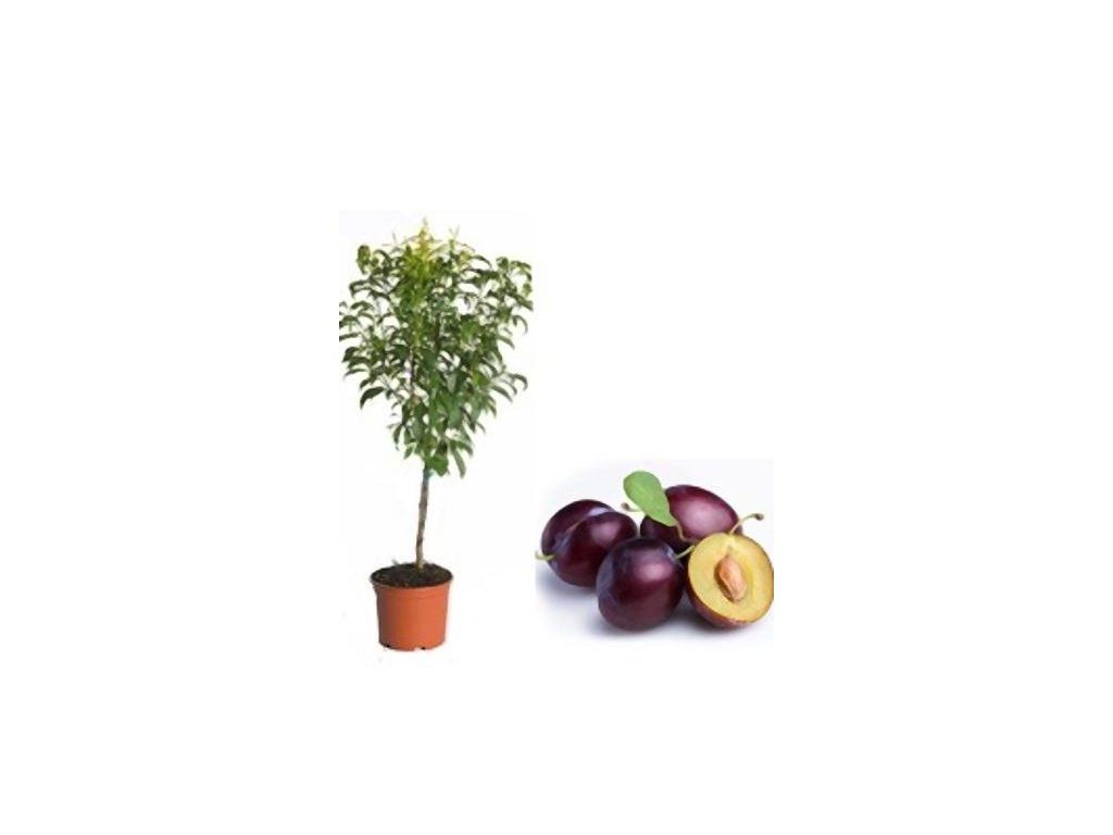 Zwergzwetschge 'Robusto' - einjährige Zwergzwetschge. Zwergsorte, die eine Höhe von 1,2-1,5 m erreicht. Die Früchte sind größer, länglich, rot-blau. Das Fruchtfleisch ist süß, mit fruchtigem Aroma. Lässt sich gut vom Stein lösen. Reift im Juni. Ideal für kleine Gärten oder den Anbau in Töpfen.