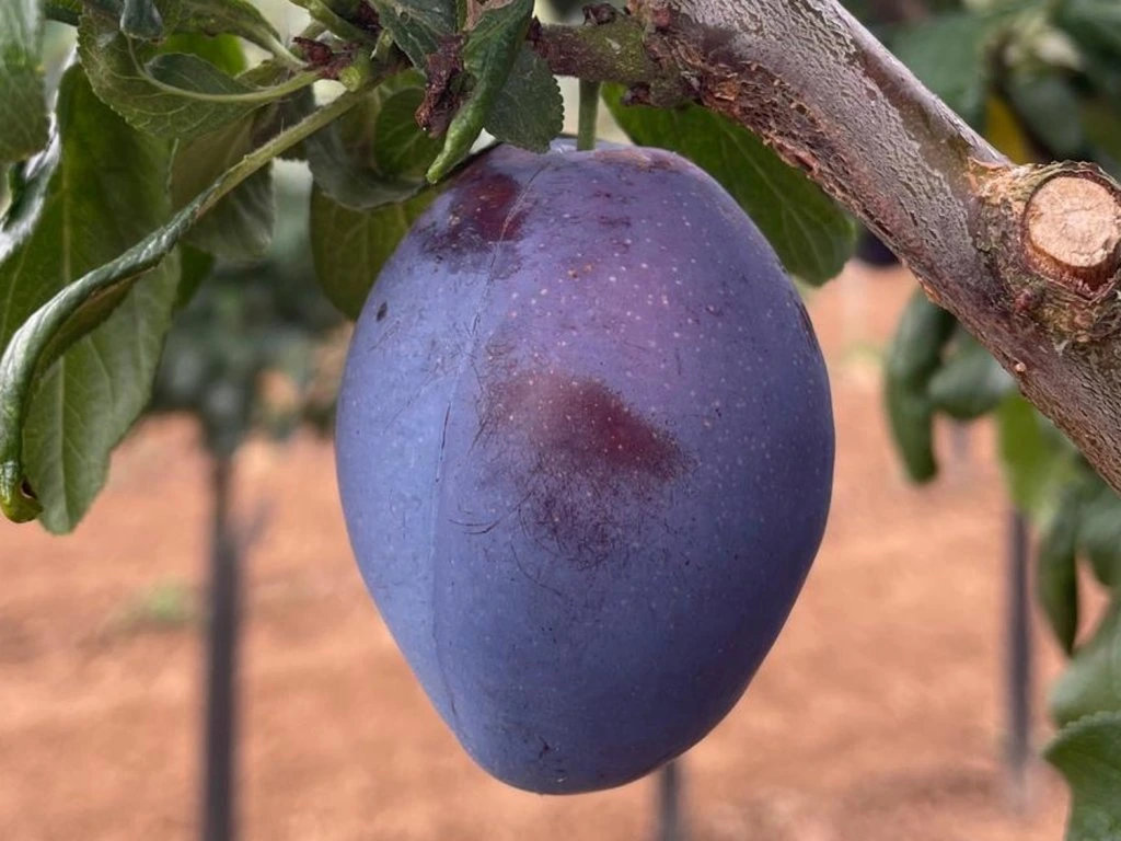 Pflaume 'Veeblue' - eine der neueren Sorten, die bei allen Anbauern immer beliebter wird. Die Früchte sind mittelgroß bis groß. Sie haben eine kugelförmige bis längliche Form. Die Schale ist violett-blau gefärbt. Das Fruchtfleisch ist goldgelb. Geschmacklich ist sie süßlich und sehr aromatisch. Die Früchte werden ab der zweiten Septemberhälfte geerntet.