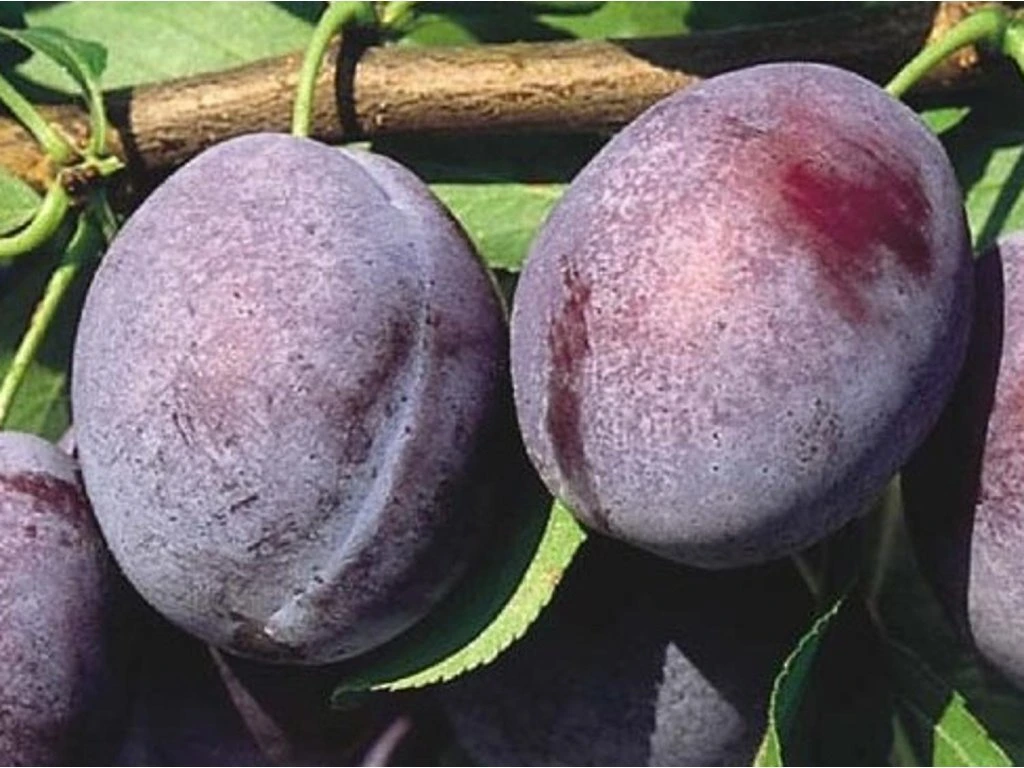 Pflaume 'Vision' - eine späte, fremdbestäubte Pflaumensorte, die sich für den Anbau in höheren Lagen eignet. Sie ist gut frosthart und tolerant gegenüber Scharka. Wir ernten die Früchte ab Mitte September. Diese sind groß, länglich und laufen zur Spitze hin deutlich spitz zu. Die Schale ist violettblau mit einem Reif. Das Fruchtfleisch ist mittelfest, gelbfleischig, saftig und gut vom Stein lösbar. Der Geschmack ist sehr köstlich. Sie eignen sich zum direkten Verzehr oder zum Einkochen.