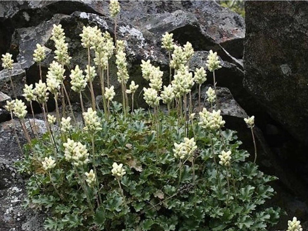 Heuchera cylindrica - Immergrüne Staude, die bis zu 60 cm hoch wird. Rosa Blüten erscheinen von Juni bis August. Die Blätter sind herzförmig, flach mit gezackten und gewellten Rändern. Robuste, matte Blätter haben eine grüne Färbung mit gelegentlich roten Rändern. Die Blattfarbe hängt vom Standort ab. Geeignet für die Pflanzung in Gruppen oder als Einfassung und zum Schnitt.